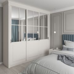 Шкаф-купе 2150 серии NEW CLASSIC K4+K4+K4+B22+PL4(по 2 ящика лев/прав+F обр.штанга) профиль «Капучино» | фото