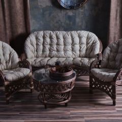 Комплект Багама с диваном, подушки коричневые полные твил (Коньяк) стол круглый | фото
