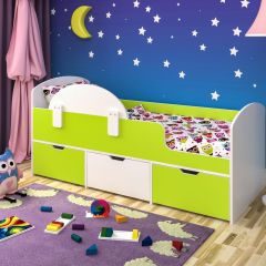 Кровать «Малыш Мини» удачно впишется в интерьер детской комнаты. Она выполнена в разнообразных цветах, среди которых легко можно подобрать наиболее подходящий к интерьеру комнаты и тот, который больше всего понравится ее владельцу. Небольшие компактные размеры позволят размесить ее в комнате даже с небольшой площадью, она легко встанет у стены и не будет загромождать пространство. При этом у кровати «Малыш Мини» имеются нижние вместительные ящики для хранения постельного белья, игрушек или других вещей. А также предусмотрен бортик для обеспечения безопасности во время детского сна, чтобы ребенок не выпал из кроватки.