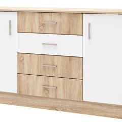БЕАТРИС Комод К1400 (Дуб Сонома/Белый глянец) | фото