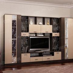 Модульная система для гостиной "Сабина" - это классическая модульная программа, имеющая в своем составе 5 модулей. В гостиной «Сабина» применяются современные европейские декоры: корпус выполнен из ЛДСП «Дуб венге цаво», фасад из ЛДСП «Дуб белфорт». Декоры отличаются выраженной древесной текстурой, а фасадная часть украшена тонированным стеклом и зеркалами с пескоструйным рисунком. Мебель изготавливается из ЛДСП.