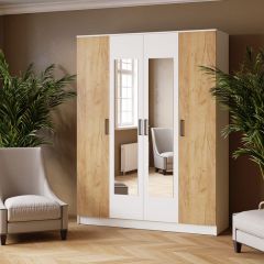ЛАРС Шкаф комбинированный 1,6 с зеркалом Белый/Дуб крафт золотой