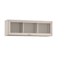 Широкая полка навесная 10.69 Бьянка оборудована тремя вместительными нишами за подъёмным фасадом на газовых амортизаторах